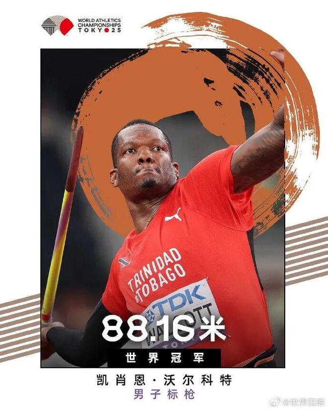 老将荣光!32岁沃尔科特夺男子标枪金牌,收获生涯世锦赛首金