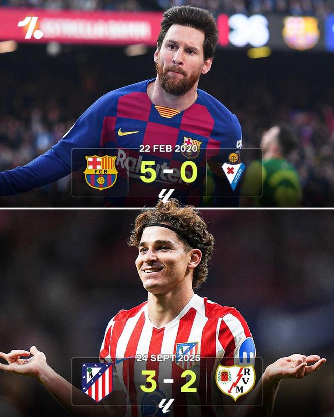 上一次阿根廷球员在西甲联赛中完成帽子戏法还要追溯到5年多以前,2020年2月22日,巴萨5-0战胜埃瓦尔的比赛中,梅西上演帽子戏法带队取胜。