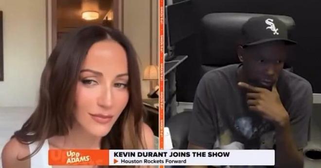 在参加凯-亚当斯的节目中,杜兰特问到:“那你要是来休斯顿——我估计你肯定会来看场比赛的。”亚当斯笑了:“ 嗯哼。我去看过一场比赛,结果你甚至连...你根本就没有。”杜兰特连忙解释道:“我受伤了啊。”亚当斯表示:“你是真的连等都不肯等一下。”杜兰特表示:“ 你来看比赛了?”亚当斯娇嗔道:“ 你都没出来打个招呼,说声Hi。”杜兰特表示:“ 我居然得等到下周看你的节目才知道你来看了我的比赛,这也太离谱了。”亚当斯表示:“ 凯文,我明明告诉过你我去看比赛了啊!”杜兰特说道:“ 不过没事了,都过去了…”亚当斯解释道:“ 我明明说了‘今晚见’。”杜兰特说:“ 咱们翻篇儿了,下赛季再说吧,到时候休斯顿的比赛里我肯定会见到你的。”亚当斯问道:“ 哪场?具体哪场比赛?”杜兰特主动发出邀请:“ 等你来德州了,我们一起去吃烧烤。”亚当斯表示:“ 好吧。那么...目前为止哪里让你有家的感觉?我听你说过这里有家的感觉,为什么这么说?”杜兰特回答道:“ 德州就是…南方的热情氛围,这就是德州懂吗?你来了就知道了,我不多说了,你该亲自来体验这里的文化。”亚当斯说道:“ 我感觉这就是,‘上当一次算你狠,上当两次是我蠢’。”杜兰特笑了:“好的,那就先这样,拜拜拜拜。”