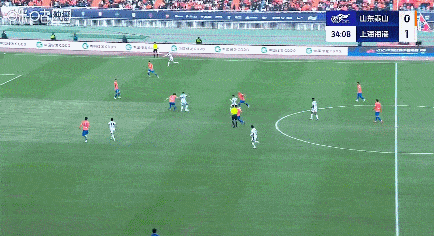第35分钟,李新翔获得单刀,趟过王大雷后被高准翼及时解围破坏。