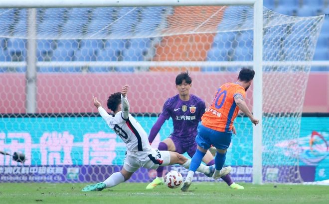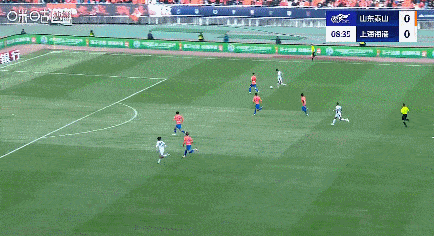 第8分钟,海港打出反击,刘若钒右路送出一记精准斜传,李新翔包抄破门,上海海港1-0山东泰山。
