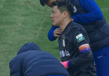 第66分钟,王大雷右肩不适,接受队医治疗,好在能继续坚持。