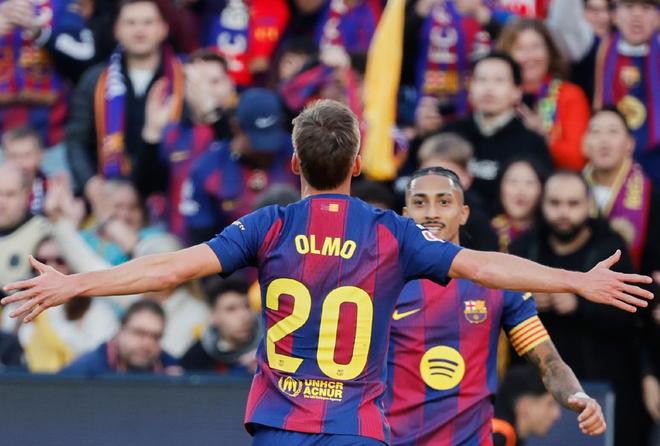 第24分钟巴萨后防再次被打穿,这一次霍安加西亚贡献神扑,挡出了洪尼奥托的必进球,逃过一劫的巴萨,2分钟之后反超比分,拉菲尼亚左路下底传中,奥尔莫中路包抄建功,帮助巴萨2-1实现反超,半场比赛结束之前,亚马尔过掉门将后,面对空门打在立柱上,错失进一步扩大领先的机会。