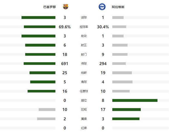 第71分钟巴塞罗那创造出了一次绝佳的进球机会,孔德右路下底倒三角传中,无人盯防的奥尔莫起脚打远角,皮球稍稍偏出,错失终结悬念的良机,不甘心输球的阿拉维斯,随后也创造出了几次极具威胁的反击机会,可惜都没有攻破霍安加西亚的十指关,伤停补时阶段,亚马尔助攻奥尔莫梅开二度,将全场比分定格为了3-1。