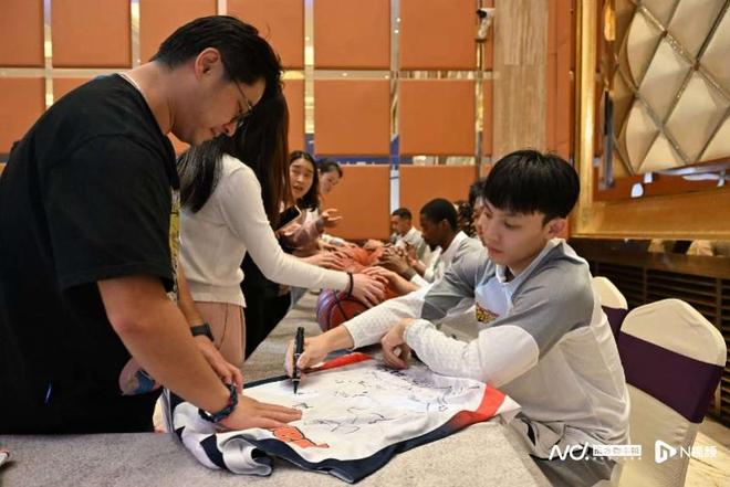 广东队的球员们为现场球迷签名。南都N视频记者 黎湛均摄总经理朱芳雨在致辞环节向大家分享了球队夏天的引援情况,“这个休赛期我们引进了崔永熙和焦泊乔两位年轻国手,从二队上调了王洪泽、陈家政两位年轻小将,还引进了四位实力派的外援,新赛季球队进一步年轻化,阵容实力和板凳深度有了显著的提升。”他说,“如此大的动作,就是为了冲击球队的第12座总冠军奖杯。”